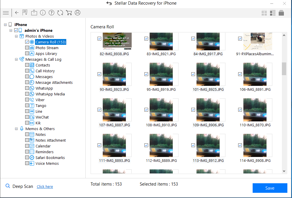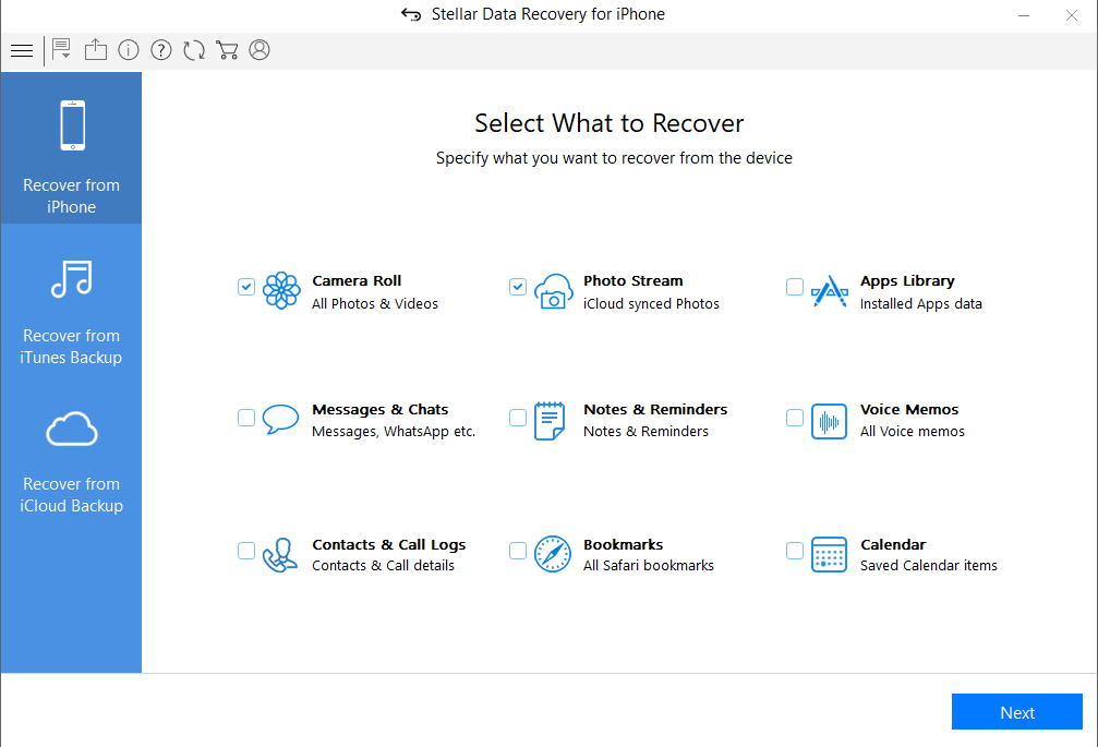 Note: Apart from photos, Stellar Data Recovery for iPhone can recover your deleted Videos, Contacts, Texts, Calendar, text messages, Notes, and other data.