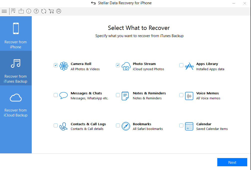 Use Stellar Data Recovery for iPhone to protect your current data on iPhone. The software allows you to select and recover only the lost photos from iTunes. With this method, you can prevent unnecessary data recovery on your iOS device.